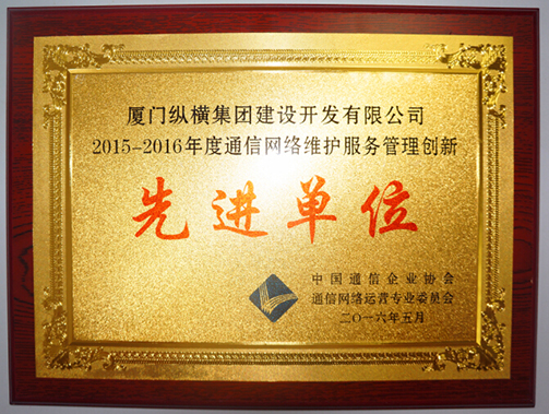???????近日,廈門縱橫集團(tuán)建設(shè)開發(fā)有限公司出席2016年中國(guó)通信網(wǎng)絡(luò)運(yùn)維服務(wù)高級(jí)研討會(huì),榮獲“2015-2016年度通信網(wǎng)絡(luò)維護(hù)服務(wù)管理創(chuàng)新先進(jìn)單位”稱號(hào),此殊榮是對(duì)縱橫開發(fā)公司在通信領(lǐng)域品牌影響力及良好業(yè)績(jī)的極大肯定。